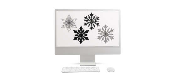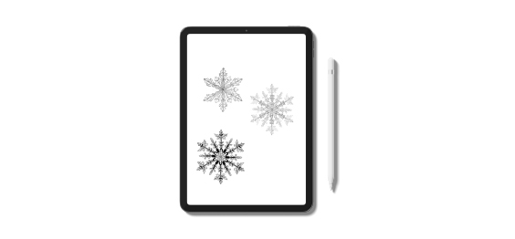 Based on photographic studies of real snowflakes, hand-drawn sketches were first created in Procreate. These were used to analyze symmetry, proportion, and line structure.