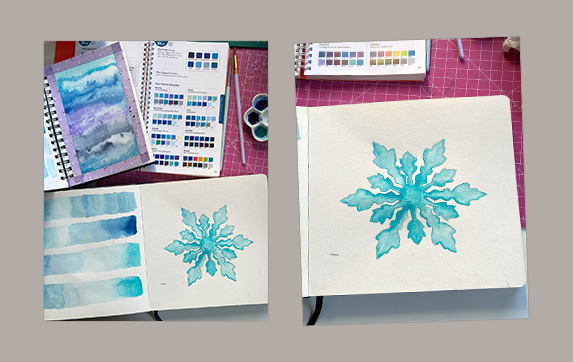 The snowflakes were initially developed as illustrations and subsequently refined into pattern designs and various applications. For this project, they served as my colouring templates.