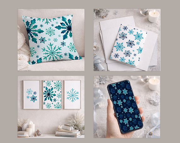 One of the most exciting aspects of this project was developing the individual snowflakes into seamless pattern designs.