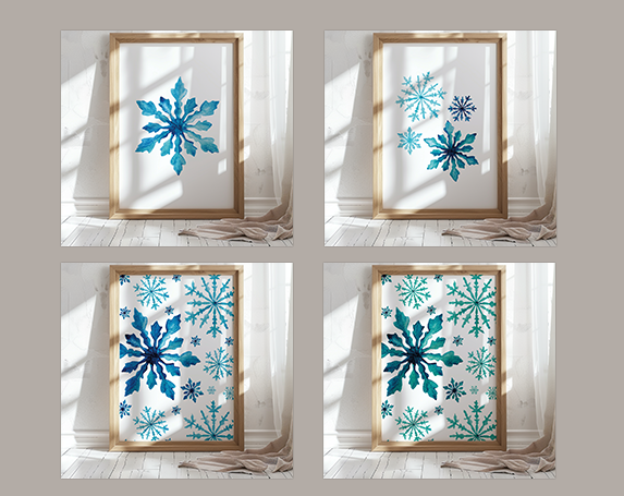 The snowflakes are intended not only to serve as a seasonal motif, but also as decorative illustrations that make an impact through their clear structure and delicate lines.