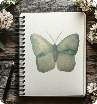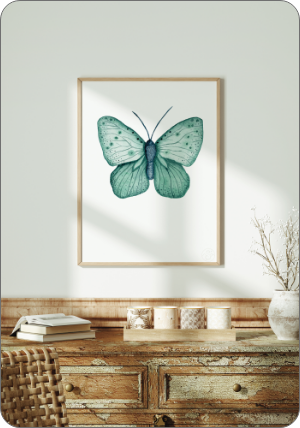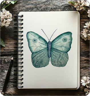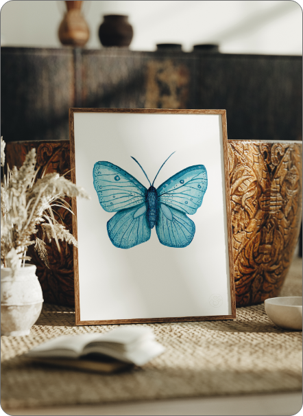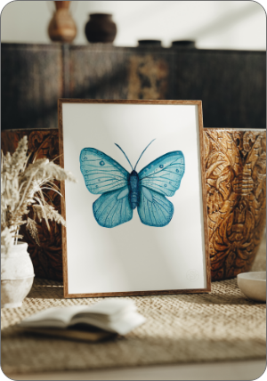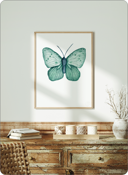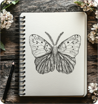 Dieses Bild entstand, als ich nach einem Motiv für meinen Mondkalender suchte. Ursprünglich wollte ich dafür eine Motte verwenden. Aber während des Entwurfsprozesses habe ich versehentlich die feinen Härchen auf den Fühlern vergessen – so wurde aus der Motte ein Schmetterling. Manchmal entstehen die schönsten Dinge durch kleine Zufälle.